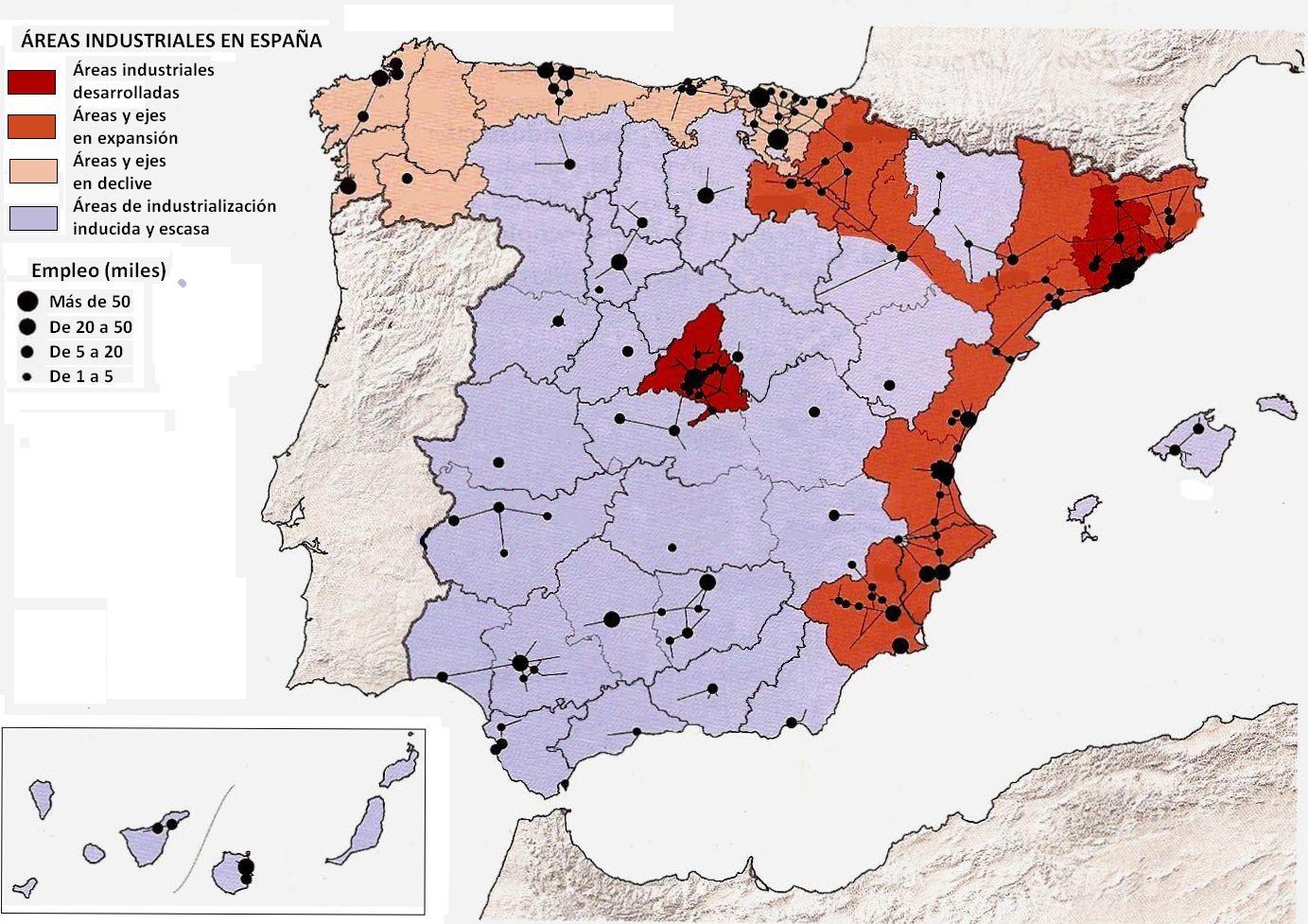 Polos de desarrollo: allí donde ya existía una pequeña base industrial (La Coruña, Vigo, Sevilla, Valladolid, Zaragoza, Granada, Córdoba, Oviedo y Logroño) el régimen franquista ofreció subvenciones, créditos, desgravaciones fiscales, suelo barato y ayudas a la formación profesional.