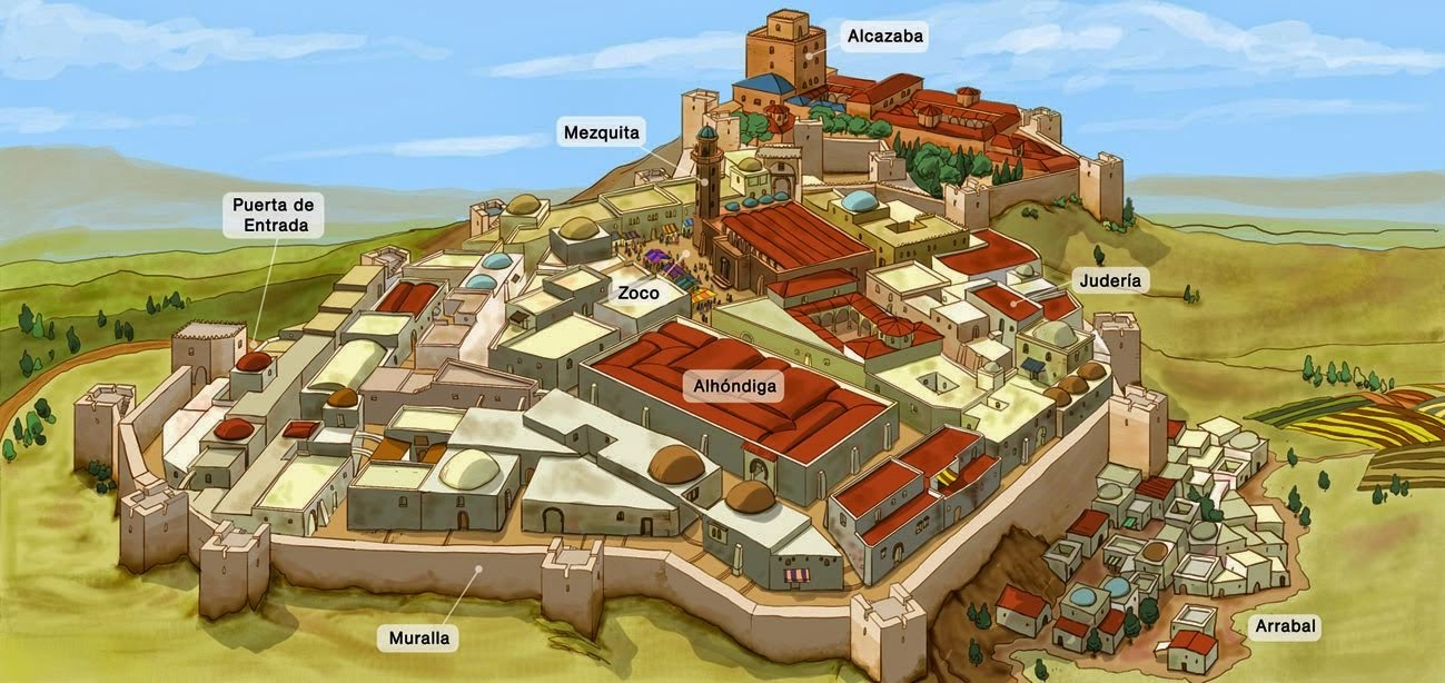Jewish quarter: The Jews had their own neighborhood within the city. Although they did business with the Muslims, they did not usually mix very much.